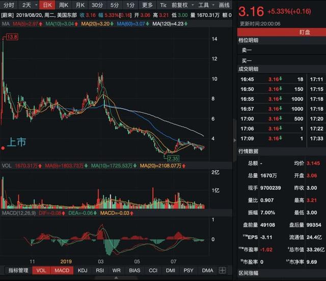 截至今年7月,蔚來兩款車累計交付19727輛,其中今年交付量達到8379輛。而此前,蔚來制定的2019年銷量目標為4-5萬輛,從目前的交付量來看將遠遠不及預(yù)期。與此同時,蔚來傳聞已久的大裁員又有細節(jié)傳出。有知情人士透露,蔚來位于美國硅谷的分公司正在縮減規(guī)模,截至美東時間8月16日已裁減100名員工。最新這一輪裁員在今年7月份就已基本確定,當時確定的人數(shù)為150人。蔚來汽車創(chuàng)始人兼董事長李斌近日首次回應(yīng)裁員傳聞稱,過去蔚來汽車員工已接近一萬人,本次減員是為了優(yōu)化、更快地提升運營效果。車市寒冬,新勢力造車企業(yè)正在面臨考驗,艱難歲月,更要精益求精。近日還有媒體報道稱蔚來正計劃回科創(chuàng)板上市,同時已經(jīng)關(guān)閉了其硅谷辦公室。對此,蔚來官方回應(yīng)稱皆為不實報道,并表示硅谷辦公室是蔚來全球戰(zhàn)略布局的重要一環(huán),一直處于正常的運營狀態(tài)。蔚來目前把體系化效率提升作為工作重點,員工優(yōu)化會有序地進行。近期沒有回科創(chuàng)板的計劃。蔚來汽車去年9月登陸美股之初曾一路走高,沒幾天便創(chuàng)出13.8美元的新高價。然而就目前來看,上市即巔峰,從當時至今不到1年的時間,蔚來股價不斷走低,最新價在3美元上方,較當時高點跌幅超70%。