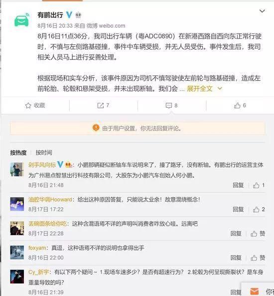 他稱,自己和李斌、何小鵬的關(guān)系遠比大家想象的要好。他個人也是蔚來汽車的股東。“我們的目標市場是這個級別的燃油車,從技術(shù)路線、市場選擇,我們不認為和蔚來汽車有任何的競爭關(guān)系。”他還表示,“類似這樣陰謀論的猜測就到此為止吧,給我們這些長征路上的新造車企業(yè)多點時間和精力,讓我們用在技術(shù)、產(chǎn)品、質(zhì)量、服務(wù)上。”而另一家新造車企業(yè)小鵬汽車近日也因隱患頻現(xiàn)而備受質(zhì)疑。在“隱瞞新車上市,引發(fā)車主維權(quán)”的風波仍未平息的情況下,小鵬G3又疑似發(fā)生斷軸,再次將其推上風口浪尖。8月16日,一輛小鵬G3在正常道路行駛時,發(fā)生疑似“斷軸”事故。“有鵬出行”在隨后發(fā)布的聲明中稱,該事故系碰撞所致,并未發(fā)生斷軸。